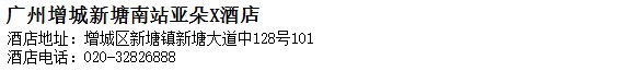 酒店地址:廣州 增城區 新塘鎮新塘大道中128號101