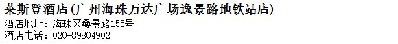 酒店地址:廣州 海珠區 疊景路155號