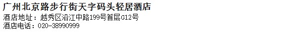 酒店地址:廣州 越秀區 沿江中路199號首層G12號