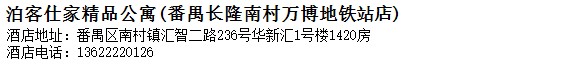 酒店地址:廣州 番禺區 南村鎮匯智二路236號華新匯1號樓1420房