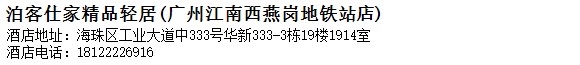 酒店地址:廣州 海珠區 工業大道中333號華新333-3棟19樓1914室