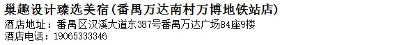 酒店地址:廣州 番禺區 漢溪大道東387號番禺萬達廣場B4座9樓