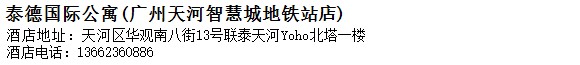 酒店地址:廣州 天河區 華觀南八街13號聯泰天河Yoho北塔一樓