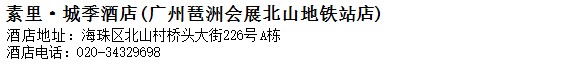 酒店地址:廣州 海珠區 北山村橋頭大街226號A棟
