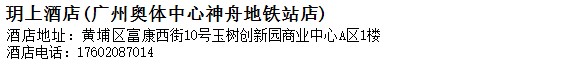 酒店地址:廣州 黃埔區 富康西街10號玉樹創新園商業中心A區1樓
