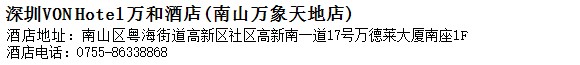 酒店地址:深圳 南山區 粵海街道高新區社區高新南一道17號萬德萊大廈南座1F