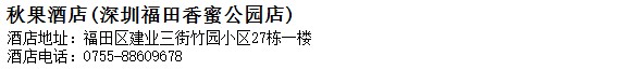 酒店地址:深圳 福田區 建業三街竹園小區27棟一樓