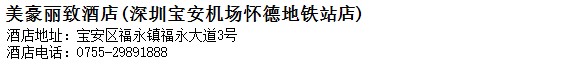 酒店地址:深圳 寶安區 福永鎮福永大道3號