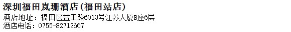 酒店地址:深圳 福田區 益田路6013號江蘇大廈B座6層