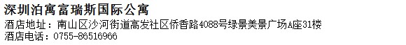 酒店地址:深圳 南山區 沙河街道高發社區僑香路4088號綠景美景廣場A座31樓