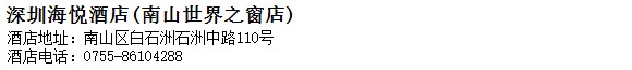 酒店地址:深圳 南山區 白石洲石洲中路110號