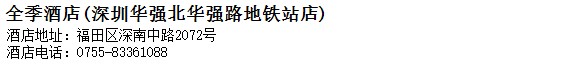 酒店地址:深圳 福田區 深南中路2072號