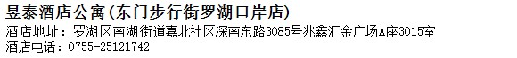 酒店地址:深圳 羅湖區 南湖街道嘉北社區深南東路3085號兆鑫匯金廣場A座3015室