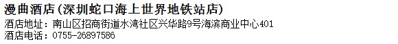 酒店地址:深圳 南山區 招商街道水灣社區興華路9號海濱商業中心401