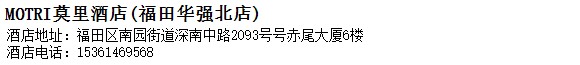 酒店地址:深圳 福田區 南園街道深南中路2093號號赤尾大廈6樓