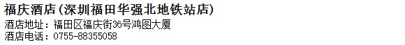 酒店地址:深圳 福田區 福慶街36號鴻圖大廈