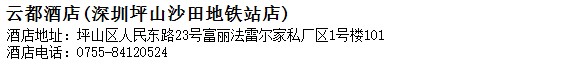 酒店地址:深圳 坪山區 人民東路23號富麗法雷爾家私廠區1號樓101