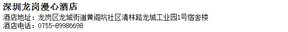 酒店地址:深圳 龍崗區 龍城街道黃閣坑社區清林路龍城工業園1號宿舍樓