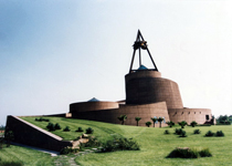 主體建筑外形追求與地貌、史跡及文物造型相結合的神韻,融原始意味和現代氣息為一體。一展館建筑為半弧形斜坡生態式建筑,二展館建筑為三部一體的變形螺旋式建筑,館外有氣勢灰宏的仿古祭祀臺和供現代文體活動的大型表演場與展館建筑遙相呼應,還有川西園林里的小橋流水、湖光島影,以婀娜的姿態與博物館的雄奇相稱。