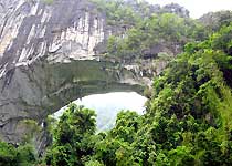 天生橋位于中甸縣城以東10千米處,為屬都崗河上游自然形成的一座石灰巖橋,高70米,寬10米,長50米,屬都崗河穿橋而去,景致奇特壯觀,巖壁滿布蜂窩狀洞穴,棲居巖鴿,紅咀鴉等高原禽類。