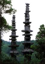 南側一幢刻佛教《大佛頂陀羅尼經》,北側一幢刻《大隨求即得大自在陀羅尼經》,腰檐等多仿木結構建筑,各層短柱設壁龕雕佛像,容相秀麗造型生動。