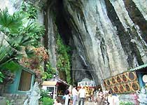 八仙洞在薊縣黃崖關,洵河東岸山崖間。洞口為木結構窟檐,面闊3間,廡殿頂。正面明間上置板門兩扇。檐下懸“洞天福地”木匾。洞內依地勢筑有半弧形神臺,其上塑八仙塑像,兩側塑有金童玉女。