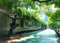 城市的美應有三個組成部分:建筑、雕塑和綠化。而城市雕塑又被稱為“城市眼睛”,是美化城市的重要部分。外灘城市雕塑群由“浦江之光”、“帆”、“風”三座不銹鋼雕塑,位于金陵東路外灘綠色長廊中,在陽光下熠熠生輝。“浦江之光”造型新奇,用豎向的水波和水珠形象組合,如五線譜上跳躍音符,以輕松歡快的旋律,奏著歌唱上海母親河黃浦江的樂曲。“帆”表現黃浦江上帆墻林立,船隊正駛向全國;帆與帆的連接,多曲線的漂動,增加了立體動感。“風”以銳角和鈍角、弧線和折線,褶皺波動表現改革東風勁吹,氣象萬千。