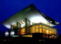 上海大劇院簡潔流暢的幾何造型,皇冠般的白色弧形屋頂,古典的戶外劇場和空中花園,象征著上海吸納世界文化藝術的博大胸懷。