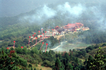 黃大仙祖宮座落于風景秀麗的鹿田湖東側,坐北朝南,倚山望湖,海拔562.8米,湖畔常有云山霧海,蔚為壯觀,呈現道教特有的神秘氣氛。