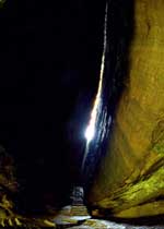 探身伏羲洞中,仰觀崖頂裂隙,可見天光一線的奇景。
