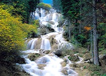 扎嘎瀑布是中國最高鈣華瀑布,牟尼溝兩大景觀之一。