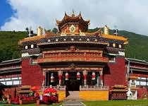 十六世紀末,蓮花生大師之語密化身、大伏藏師古汝·曲杰旺修之轉世——絳達•扎西道吉大師及其弟子應明正土司之邀,前來金剛寺駐錫、弘法利生,金剛寺遂成為寧瑪派北傳伏藏傳規之道場,屬寧瑪派六大道場之一——衛藏多吉扎寺的重要分寺。寺名亦隨主寺而定,通稱康定金剛寺——佛教樂空不變洲。寺院為四合大院,其中大殿是拱斗式建筑,藏漢合壁,瑰麗雄偉,堪稱一絕,寺內楊樹參天、環境幽靜,它同近旁的南無寺一道形成了康定南郊雙璧。