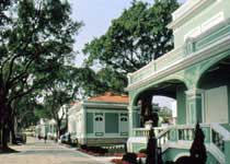 這幾幢建筑于1921年落成,曾是離島高級官員的官邸,亦是一些土生葡人家庭住宅。政府將這一建筑群進行徹底修復,其中三幢被改建為博物館,由西到東分別建成“土生葡人之家”,“海島之家”及“葡萄牙地區之家”,另外兩間分別是“展覽館”和“迎賓館”。