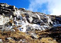 2、周至縣厚畛子鄉-三合宮瀑布-南天門-玉皇池-三爺海-二爺海-頂峰拔仙臺,一般稱為新路。這條路線大部分與老路重合,但路程縮短了約5公里。途中一直沿一條小溪流上行,需來回過河,如遇下雨則不好走。景觀與老路差別不大。