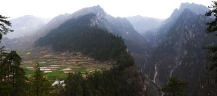 翠峰山屹立于舟曲城北、巍峨壯麗的迭山之脈雷古山南麓的群山環抱中。其山勢雄偉挺拔、橫峙如屏,東北南三面絕崖凌空,陡峭如劍,只有山西有一崎嶇危途可通峰頂。