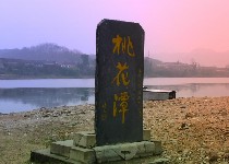 桃花潭位于涇縣境內太平湖畔,系青弋江流經翟村至萬村間的一段水面。這里地勢平坦,潭面寬闊。桃花潭西岸,怪石拔地而起,層巖陡峭,臨潭峙立,形似龍盤虎踞。縣志《桃花潭記》稱“層巖衍曲,回湍清深”,“清泠皎潔,煙波無際”。峭巖上古藤綴拂,煙霧繚繞,朝陽夕暈,山光水色,尤顯旖旎。駕一葉扁舟泛游其上,一篙新綠,微波漣漪,足見“千尺潭光九里煙,桃花如雨柳如綿”。潭東岸,有東園古渡,系汪倫踏歌送別李白處,有明朝建踏歌岸閣,西岸有壘玉墩、書板石、彩虹崗、謫仙樓、釣隱臺、懷仙閣、汪倫墓等景點。下游東岸有建于乾隆年間的文昌閣。閣重檐飛角,方圓八面,氣宇軒昂,昔為文人興會之所,游人登臨極目之處。