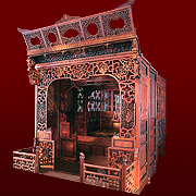 第二展廳的清拔步千工床是木雕床中的精品,被譽為“鎮館之床”。用料為黃楊木,長217公分,深366公分,高292公分,前后共有三疊,此床歷時3年方才雕成,用工千余,故有其名。