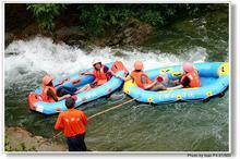碧水灘位于清遠市清新縣高田鎮山區。離清遠市19公里,距廣州68公里,近有飛來峽大壩,飛霞等旅游風景區。山區內,林木茂密,層巒疊嶂,龍潭飛瀑,山花爛漫,郁郁蔥蔥,空氣清新,令人心曠神怡。溪水跌宕流湍其中,清澈見底,溪中奇石星布成趣,小橋如虹,兩岸綠竹扶風,繁木相掩,千年古榕吐新綠。游客駕馭沖氣皮艇沿溪漂流,時而急流激蕩,時而緩流輕越,間或銀灘相嬉,刺激逍遙盡享。是你回歸大自然,領略田園風光,縱情展現自我的理想旅游渡假之地。