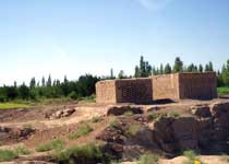 墓群總面積約500平方米,座落在一臨水的土丘上。1986年,自治區考古工作隊以及上海自然博物館的有關單位的專家學者對該墓葬進行發掘,面積300平方米,墓葬29座。初步探明其形制為豎穴土坑,土坯墓,葬式為單人側身屈肢一次葬;出土器物主要有皮、茂、銅、陶、木、石等制品。經有關專家考證及儀器測定表明,屬距今約2900~3200年前新石器時代晚期,是金古并用時期的古墓葬。