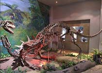 在高大的裝架陳列廳里,可以看到四川峨眉龍、亞洲第二龍、李氏蜀龍、多齒鹽都龍、太白華陽龍以及扁頭中國短頭鯢等大山鋪恐龍動物群的復雜骨架等。
