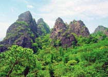 二峰之后是三峰,原是五指山的最高峰,后被雷劈去一截。接著是四峰、五峰。這五座山峰巔雖然分立,但實際上卻是山體相連。置身于峰巒,只見云霧從身邊徐徐飄過,似置身在仙境中。