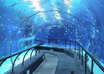 日照海洋館最精彩的部分是海底隧道,長度168米,是亞洲最長的仿海底亞克力觀光隧道,它是由拱形亞克力玻璃(我們俗稱的有機玻璃)建成的環形封閉空間,里面放養著幾百種、上萬種海洋生物.在這兒是欣賞海洋生物的最佳場所。隧道地面為自動步行道,游客朋友們可以駐足參觀,抬頭仰望各種魚類,透過立體透明的隧道,呈現于眼前的是奇異的海底景觀—-珊瑚群、海藻、礁巖和游弋于碧藍海水中的幾百種萬余條來自我國海域和太平洋海域的珍稀魚類。置身于其間能夠讓您如同身在海洋深處,全方位、多角度地觀賞神秘的海底世界和珍奇異彩,光怪陸離的海洋生物,充分感受和體驗大海的深邃與博大。另外海洋館還有海豹表演館,游客們還有機會同海豹合影留個紀念。