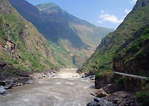 怒江大峽谷位于滇西橫斷山縱谷區三江并流地帶,峽谷在云南段長達300多公里,平均深度為2000米,最深處在貢山丙中洛一帶,達3500米被稱為“東方大峽谷”。海拔4000多米的高黎貢山和碧羅雪山夾著水流洶涌的怒江,峽谷中險灘遍布,兩岸山勢險峻,層巒疊峰,比較有名的景觀有雙納洼地嶂峽、利沙底石月亮、月亮山、馬吉懸崖、丙中洛石門關、怒江第一灣、臘烏崖瀑布、子楞母女峰、江中松等。怒江大峽谷分布傈僳族、怒族、獨龍族、白族、普米族等十幾種少數民族,民俗風情獨特、神秘。