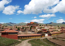 郎依寺位于阿壩縣境內,是阿壩縣至川西北規模最大的苯波教寺院,有喇嘛700多人。阿壩縣共有三座苯波教寺廟:建在郎依寺對面山坡的多登寺,屬國家二級保護單位,藏有乾隆時期的龍椅、兩千多年前的法螺號以及眾多的文物;還有一座在下阿壩。 郎依寺座落在群山環抱之中,顯得格外的靜謐,其建筑裝飾精美華麗。從外表看,郎依寺與其它藏傳佛教寺廟似乎沒有區別,喇嘛們的穿著也沒有不同,但大經堂正中供奉的是苯波教祖敦巴幸饒的巨型塑像,左右整齊地排列著1113尊敦巴幸饒的銅像,后面是歷代郎依寺寺主的鍍金像,四周墻壁上則畫滿了苯波教歷史和教義的精美壁畫。大經堂的橫梁上,各種姿態的仙女雕像十分動人。