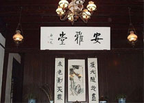 故居臺門上方有詩人表弟金庸的手書“詩人徐志摩故居”,正廳有匾曰“安雅堂”,乃啟功補書。