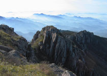 秋季里,從百步嶺登上青松嶺,然后沿游步道到達東岙頭,一路上可看楓葉正紅,群峰層林盡染之景。