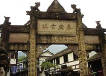 泰安古鎮并不特別出名和熱鬧,但它古樸雅潔,安寧祥和。走在潔凈的小街上,兩旁是潺潺清流,蜿蜒流經每一條街道、每一戶人家。小鎮的盡頭是古泰安寺,山門輝煌,廟宇金碧,鐘聲隱隱。