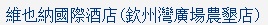 Vienna International Hotel (Qinzhouwan Square Nongken) is located at the intersection of Qinzhouwan Avenue and Yinhe Street (Guangxi Nongken building), the main road of the city. It has excellent transportation and geographical location. It is close to the administrative units, shopping malls, Wal Mart, former residence of Feng Zicai, bus terminus, railway station, etc. in Qinzhou. It's only 5 minutes' drive, so that you can have an efficient business life.