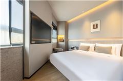 北京宝欐酒店(国贸SKP店)(Beijing BoLLy Wood Hotel (Guomao SKP Store))是一家突出文化内涵与真诚品质的现代艺术酒店。设计师采用不对称、不平衡的艺术造型,大胆对酒店的功能和空间进行了排列,强烈的造型矩阵强调人生并非完美、人生即是短暂的停留,人生要经历等待并满怀希望;和你生命中最重要的人一起在酒店、用餐、观影,享受生活、享受愉悦。房间根据面积大小配备55寸--95寸超大电视,5G网络500兆网速,带来更好观影及游戏体验。通过纯真的代客之道,传递出人生积极的态度。酒店总经理及酒店全体员工给您送上最真挚的祝福!我们以一个全新的酒店品牌,坐落于北京国贸CBD/华贸SKP。我们诚挚邀请您参观、入住、就餐等体验并提出宝贵意见。