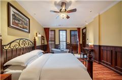 丽呈熹玥·云喜公馆(广州北京路步行街珠江夜游店)(YUNHSI Guangzhou)坐落在越秀区惠福东路惠新东街,信步可达购物与美食天堂——光明广场、广百大厦、天河城、北京路步行街;近天字码头、广州站、广州塔、珠江琶醍、万国奥特莱斯、沙面;距广州白云国际机场 50 分钟车程。交通便利,商业繁荣,资源富集。 让您流连于城市热闹繁华之中,亦能尽品世间烟火的恬静安宁! 生活要有光,旅途亦有伴,放下工作中的劳累、生活中的繁琐,推开丽呈熹玥云喜公馆色彩斑斓的穿越之门,感受时空的穿越,游走于民国初年的情景之中,品味南洋文化风情,感悟民国文化的万象包罗融通中西的魅力,拥抱法兰西风情之下的罗曼蒂克,悦享时光,满心熹玥!